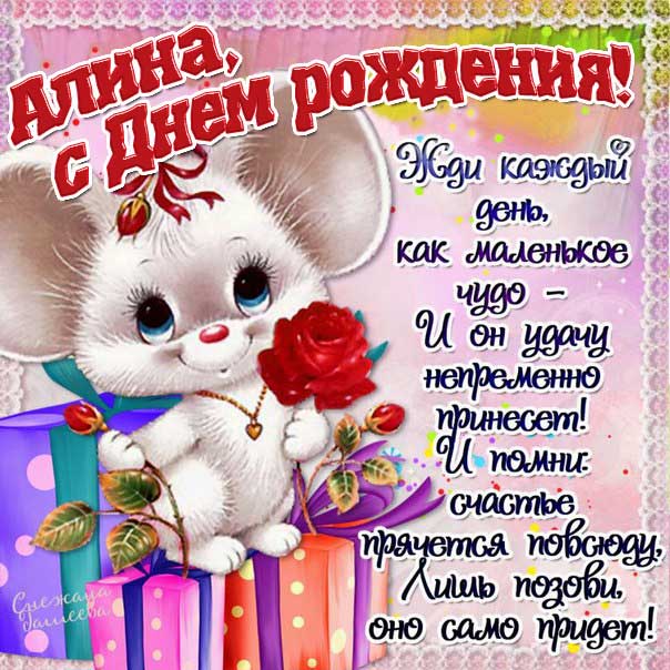 Алина, с днем рождения! Много радости, счастья и красивых подарков тебе желаем! Предлагаем вашему вниманию детские картинки — С днем рождения, Алиночка!