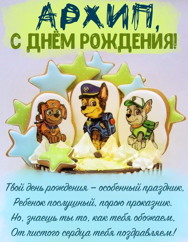Дорогой мальчик Архип, с твоим днем рождения! Пусть каждый день будет веселым, радостным и счастливым! Предлагаем вашему вниманию красивые детские картинки — с днем рождения, Архип!