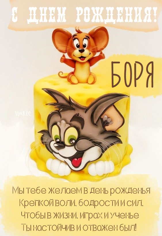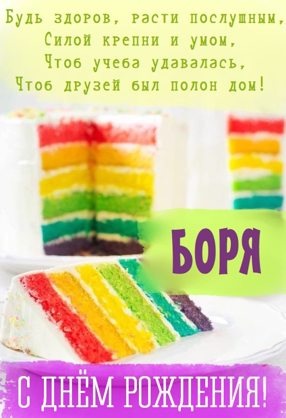С днем рождения, Боря! — открытка детская.