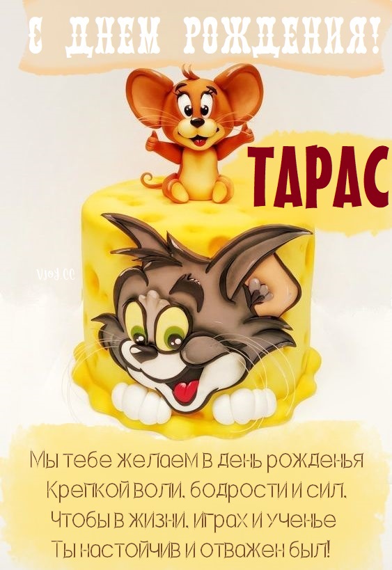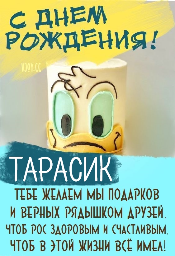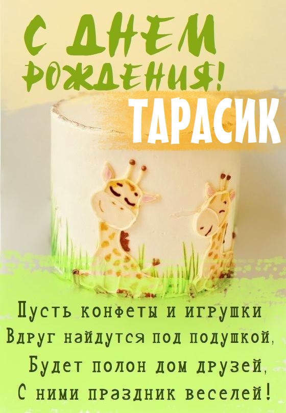 Тарасик, с днем рождения тебя! — детская открытка.