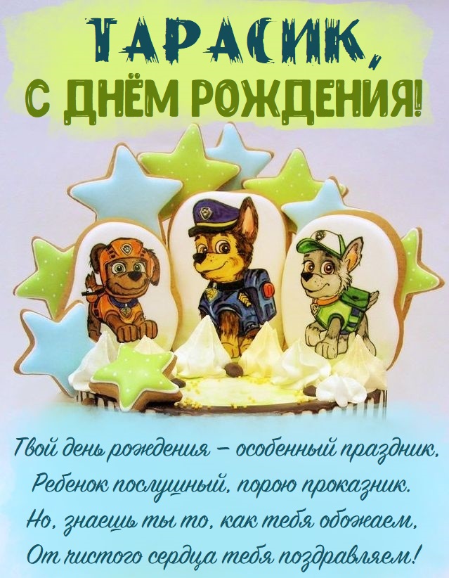 Мальчику Тарасу детское поздравление с днем рождения.
