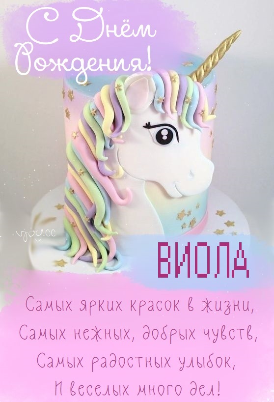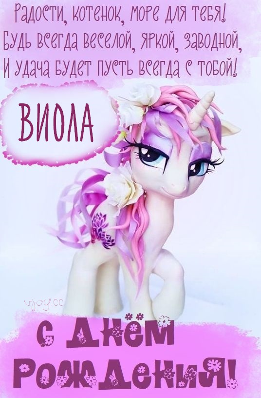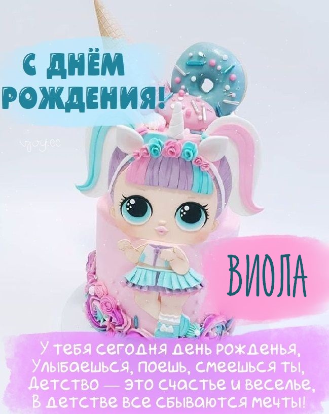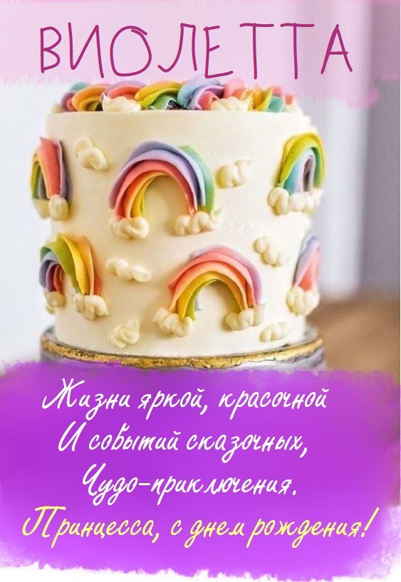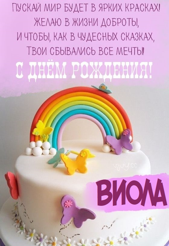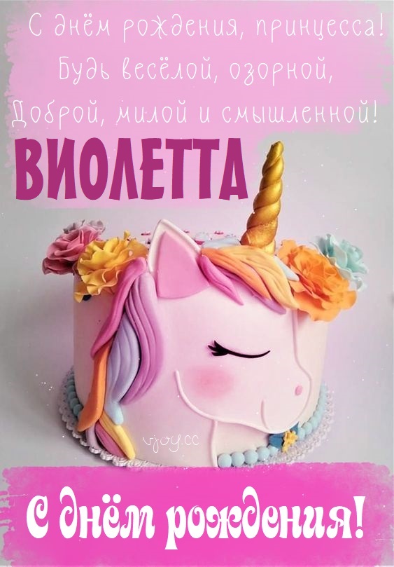 Милая Виола, с твоим днем рождения! Желаем тебе жить как в сказке! Предлагаем вашему вниманию красивые детские картинки — С днем рождения, Виолетта!