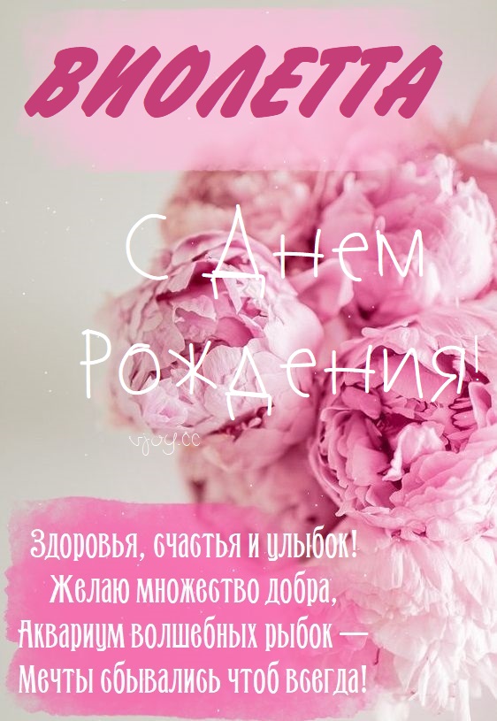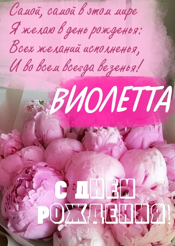 Открытка детская Виоле с красивым поздравлением и цветами.
