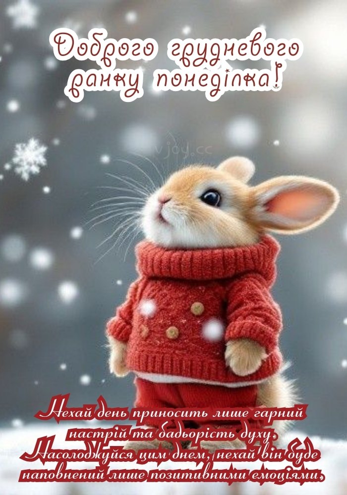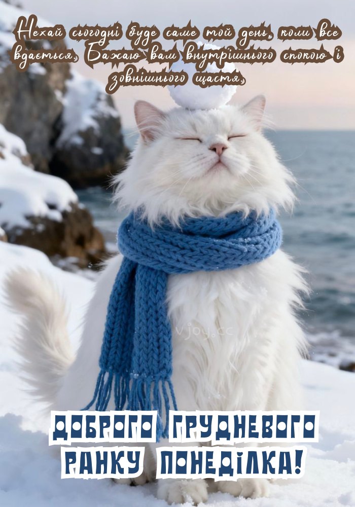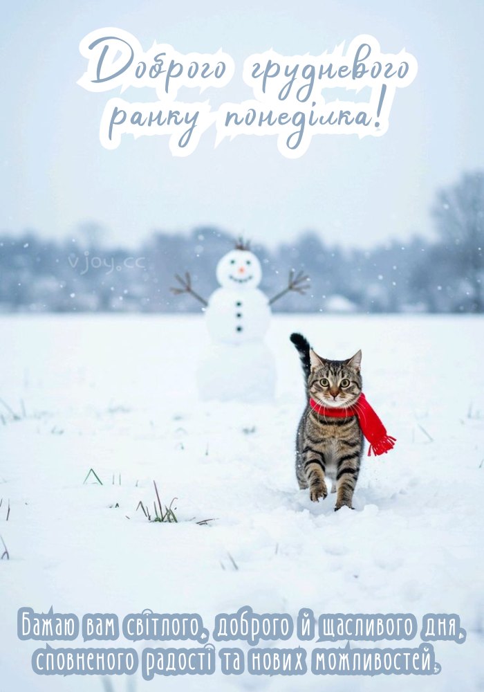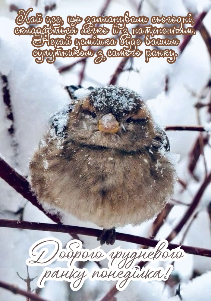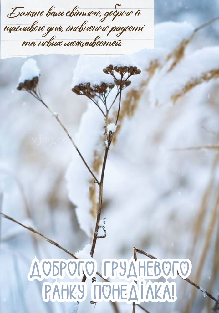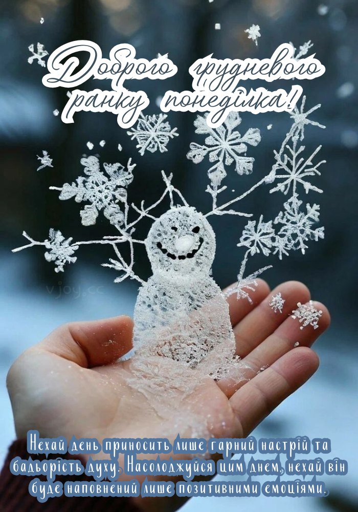 Доброго грудневого ранку понеділка з м’яким сніжним настроєм і затишними митями.