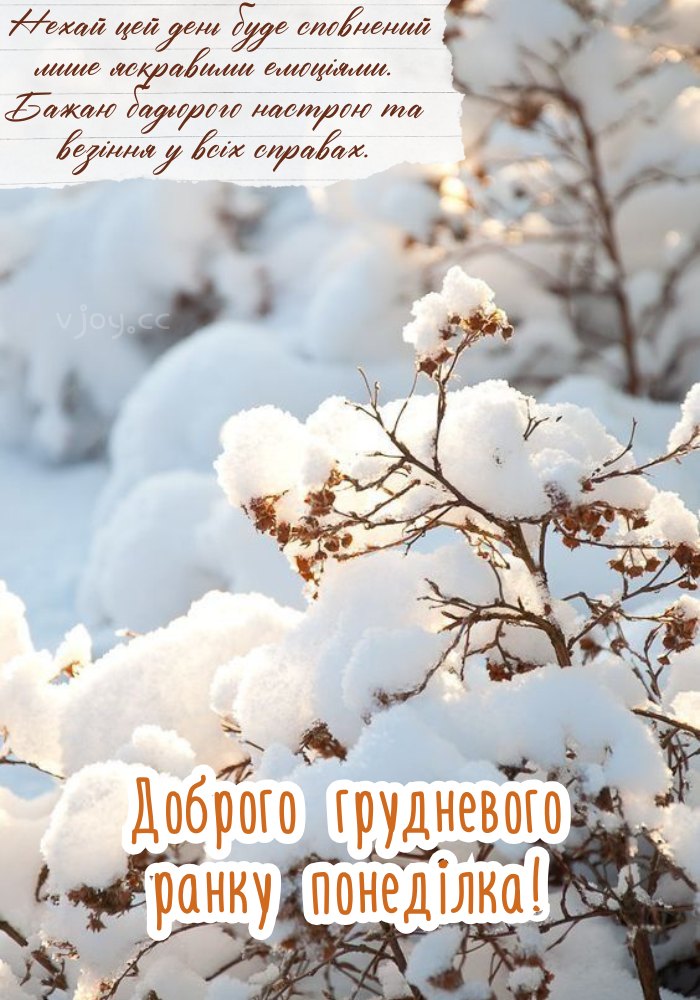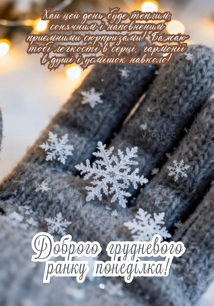 Доброго грудневого ранку понеділка, наповненого світлом і спокоєм.