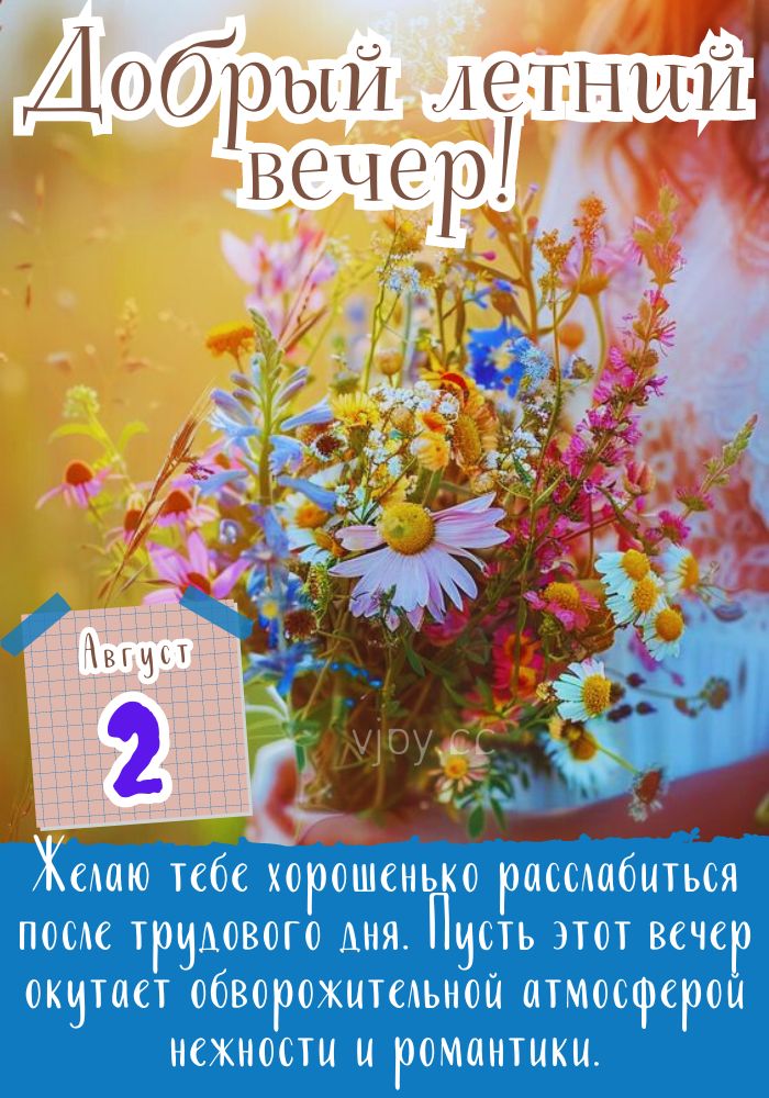 Красивые картинки с пожеланием прекрасного летнего утра 2 августа, доброго дня, вечера и ночи 2 августа. Предлагаем вашему вниманию красивые картинки на 2 августа.
