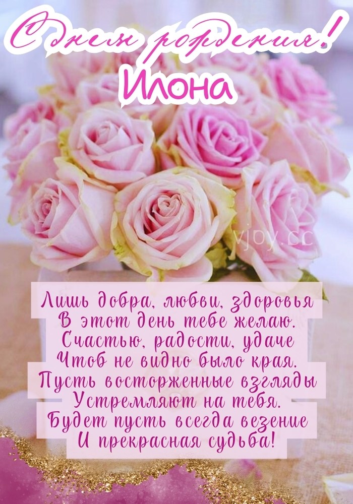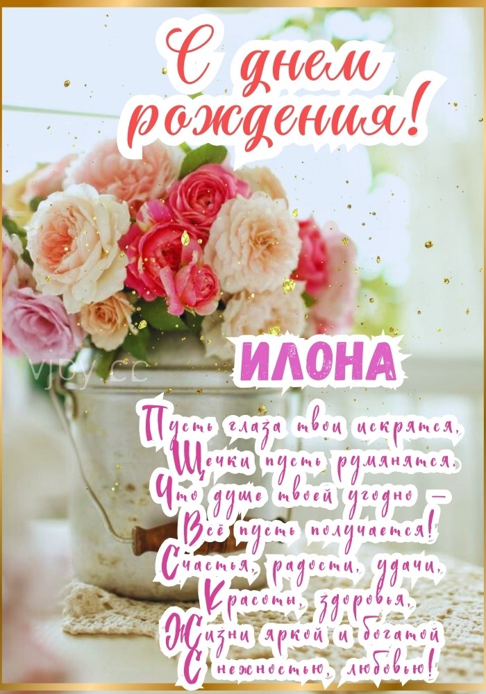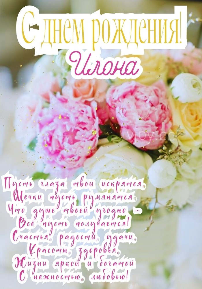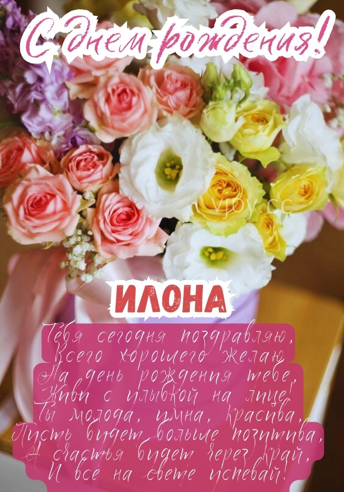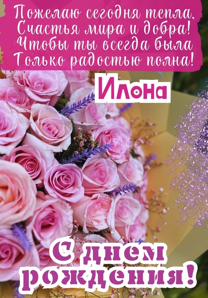 Илоночка, с днем рождения! Красивые праздничные открытки с цветами, мишками, шампанским, подарками и поздравлениями на день рождения Илоны. Предлагаем вашему вниманию картинки поздравления — С днем рождения, Илона!