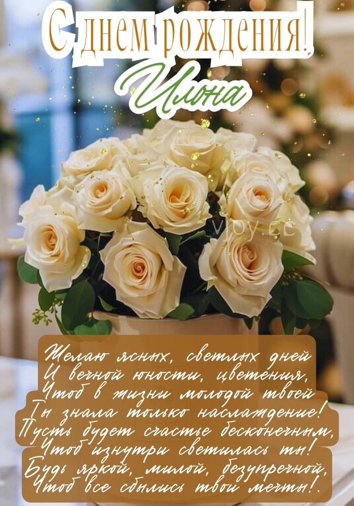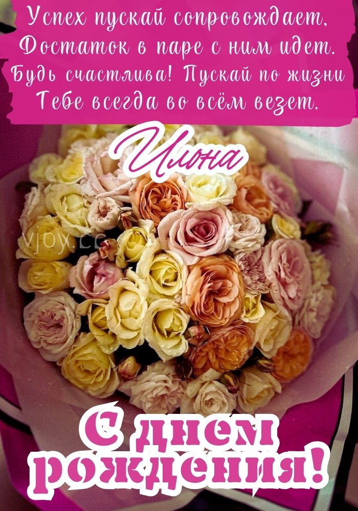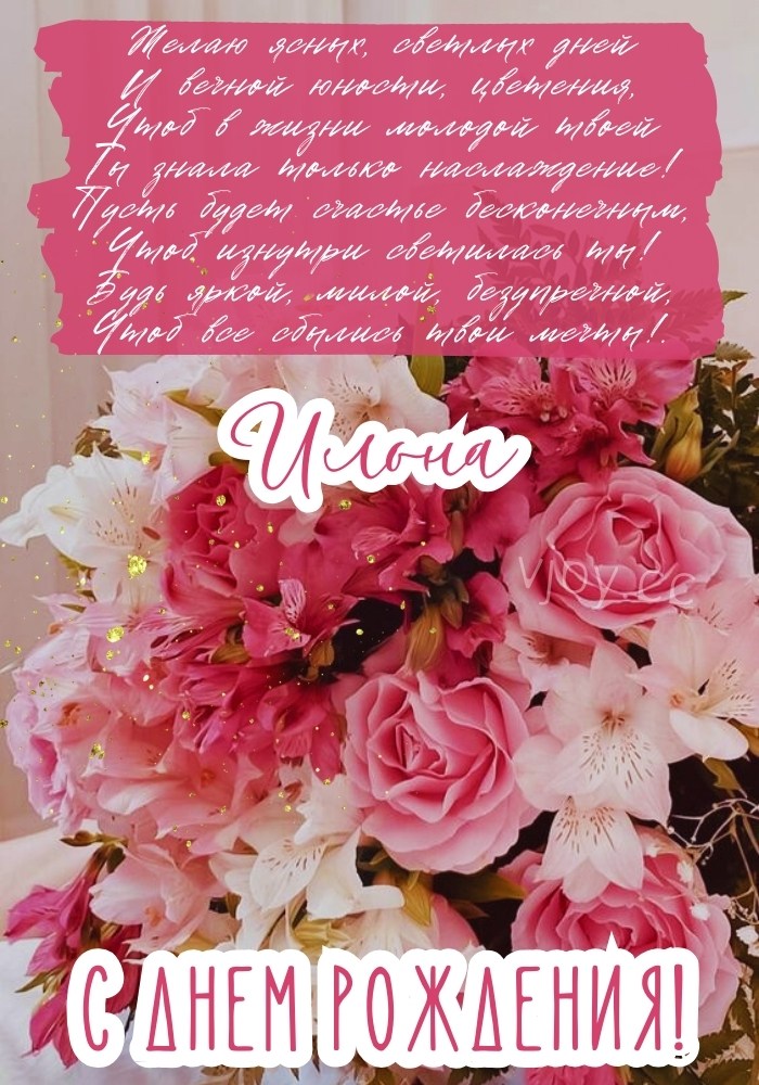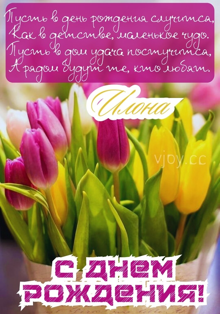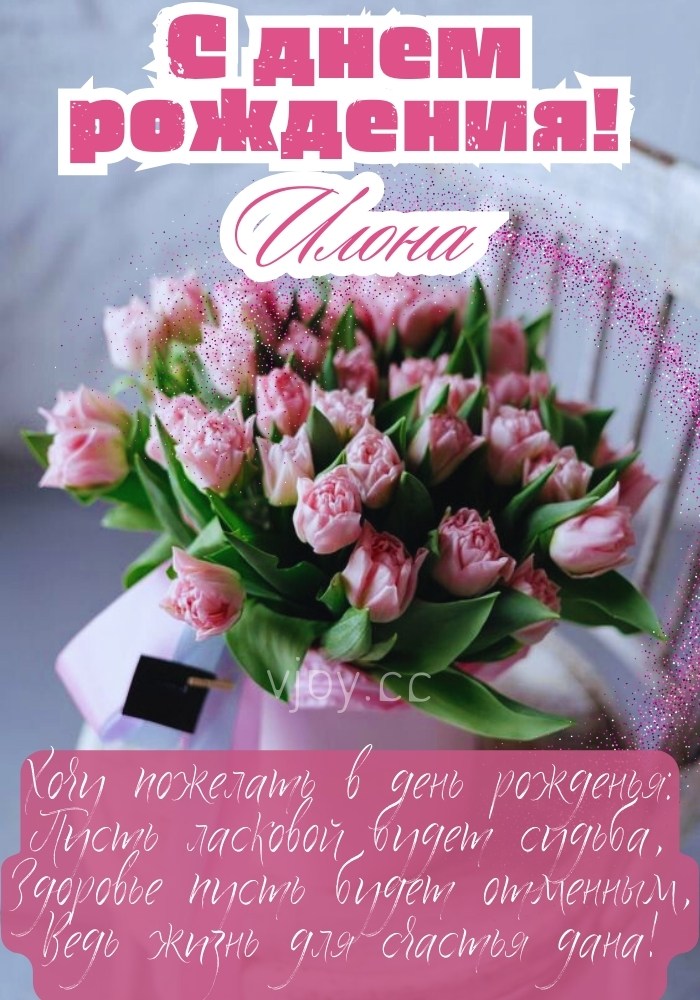 Илоночка, с днем рождения! Красивые праздничные открытки с цветами, мишками, шампанским, подарками и поздравлениями на день рождения Илоны. Предлагаем вашему вниманию картинки поздравления — С днем рождения, Илона!