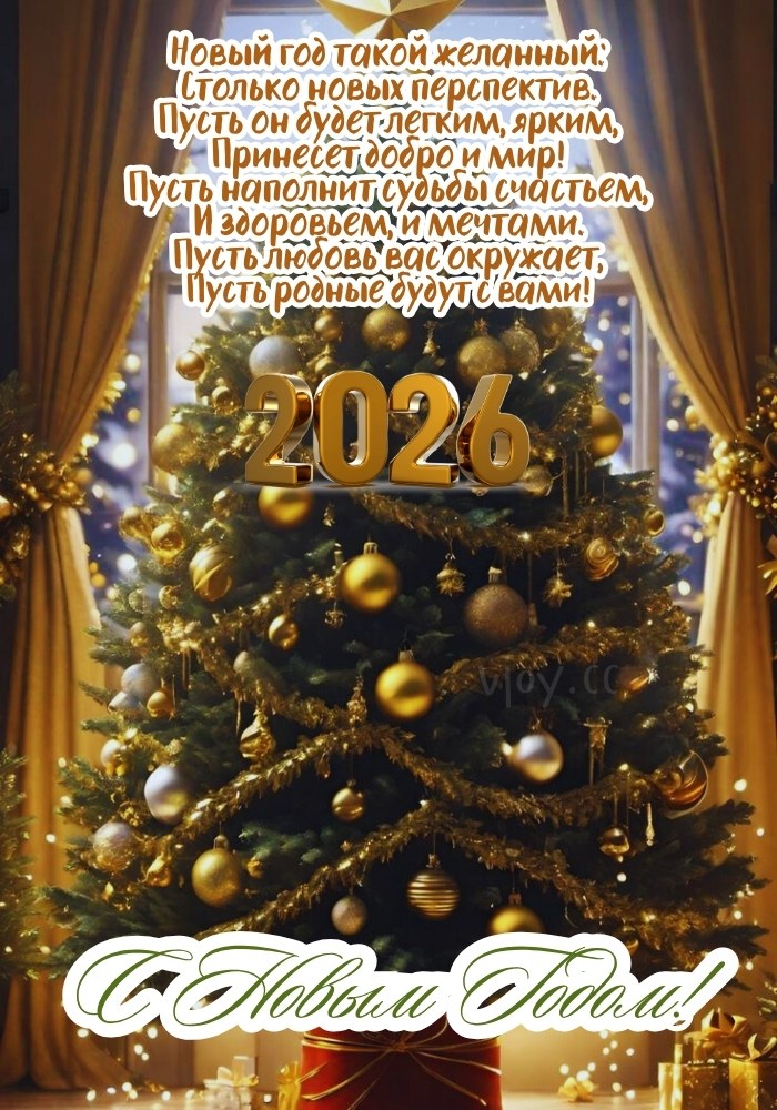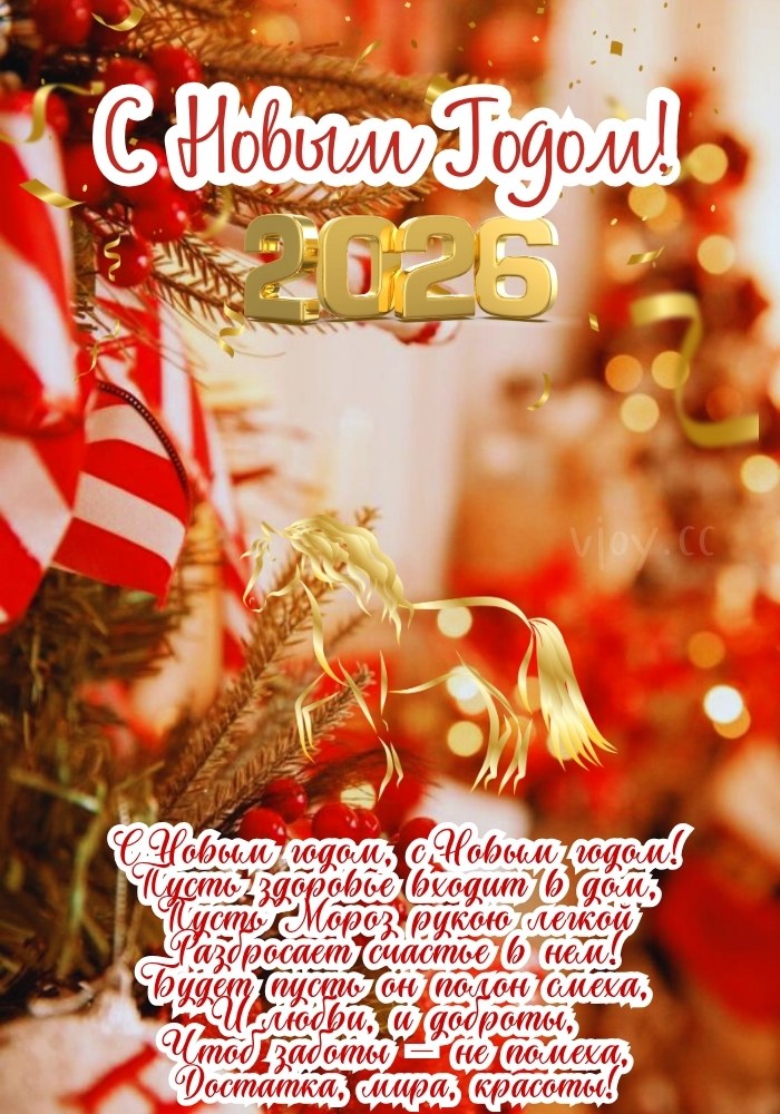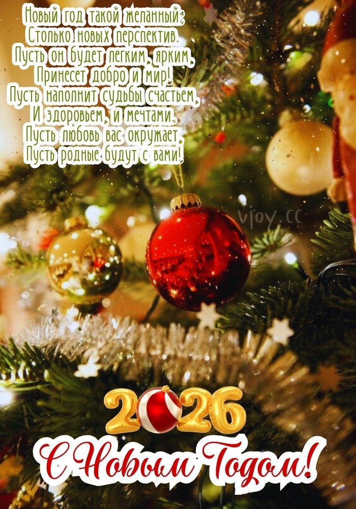 Поздравление с Новым годом 2026 — желаем счастья и мира в душе.