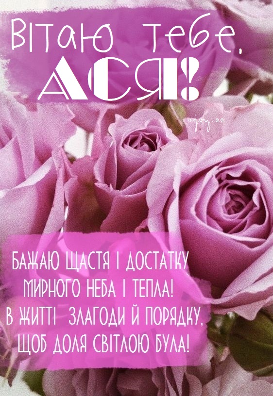 Листівка дівчині з іменем Асі на день народження.