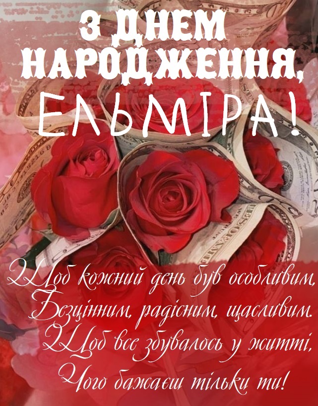 Красиве привітання на день народження Ельмірі.
