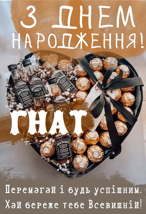 Дорогий Гнат, щиро вітаємо тебе зі святом! Перемагай і будь успішним! Пропонуємо вашій увазі красиві картинки привітання — З днем народження, Гнат!