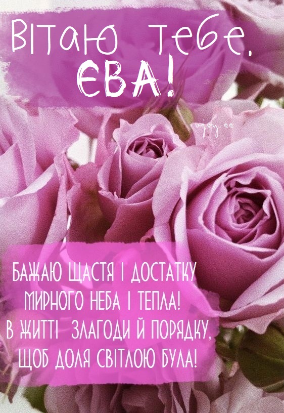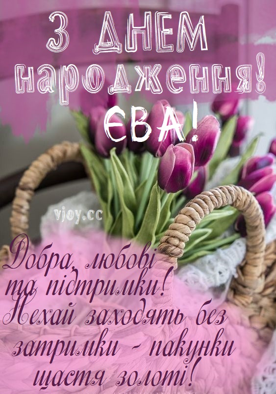 Євочка, щиро вітаємо тебе зі святом! Хай Бог тебе благословляє! Пропонуємо вашій увазі красиві картинки привітання — З днем народження, Єва!