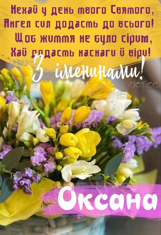 Красиві листівки українською мовою на День Ангела Оксани. Пропонуємо вашій увазі красиві картинки привітання — З іменинами, Оксана!