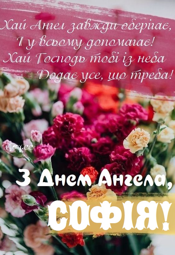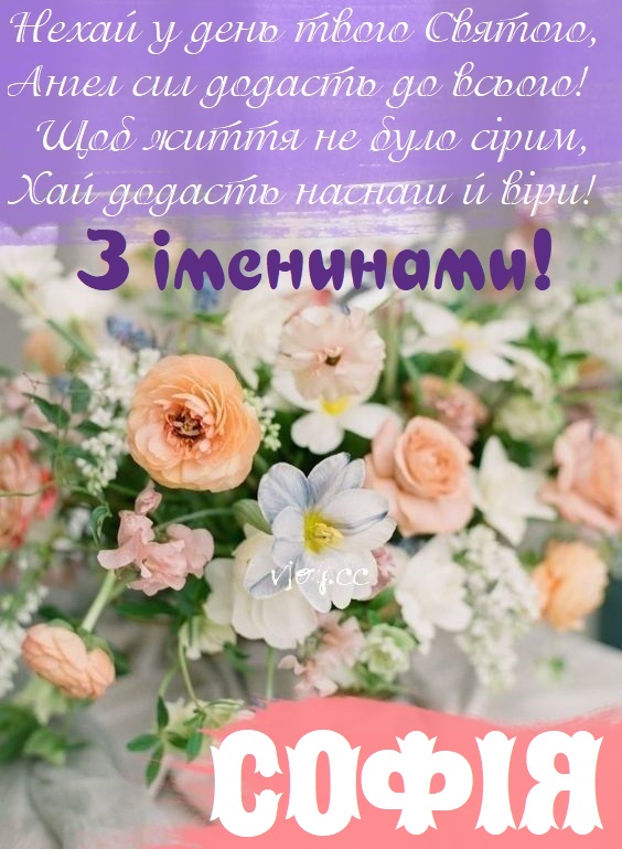 Красиві листівки українською мовою на День Ангела Софії. Пропонуємо вашій увазі красиві картинки привітання — З іменинами, Софія!