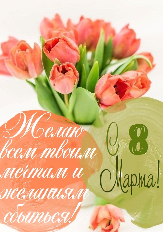 Красивая открытка — С 8 марта с букетом тюльпанов.