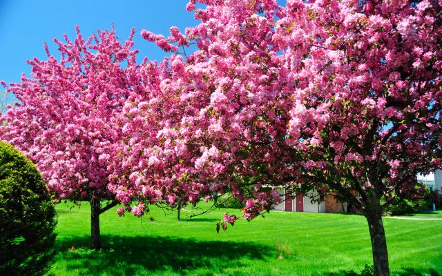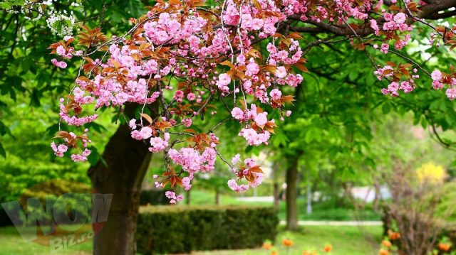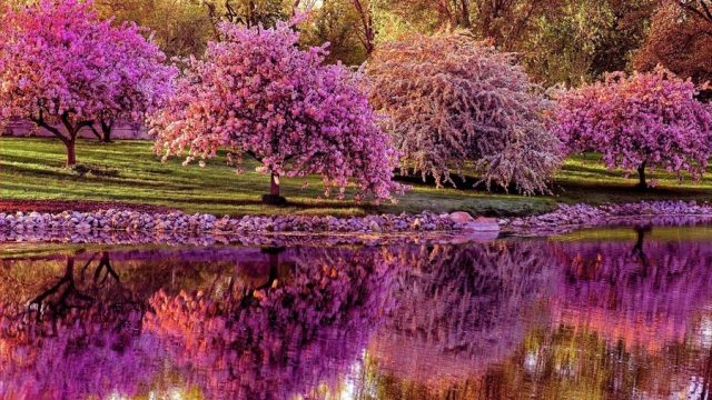Розовое цветение деревьев.