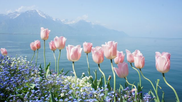 Тюльпаны на берегу.