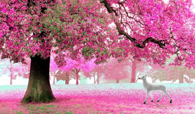 Картинка с деревьями в цветах.
