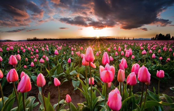 Огромное поле тюльпанов.