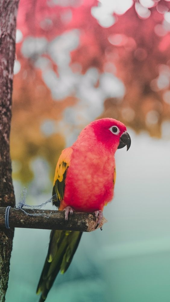 Розовый попугай на фон телефона.