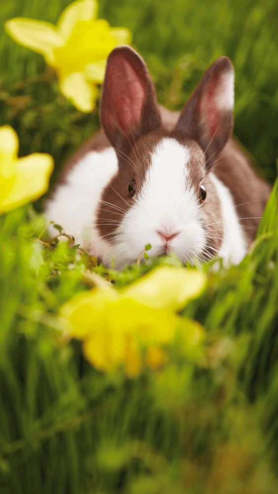 Заставка на телефон с животными — кролик и трава.