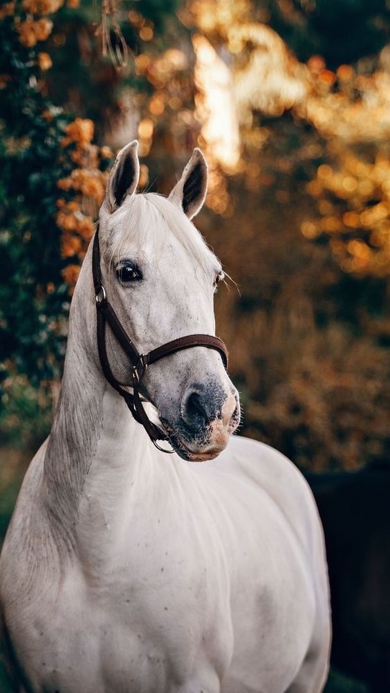 Красивая белая лошадь на заставку телефона.