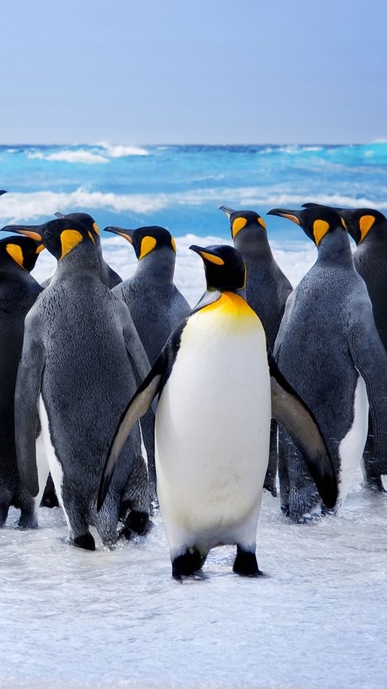 Заставка с животными на телефон — пингвины.