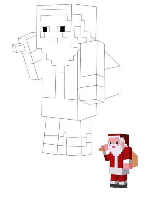 Дед Мороз из Майкрафт — на рисунке для срисовки.