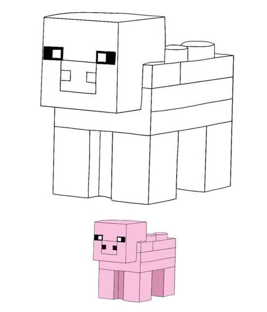 Рисунок майнкрафт — Стив, крипер и свинка.