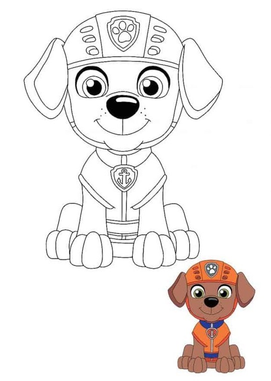 Раскраска со щенком Зумой.