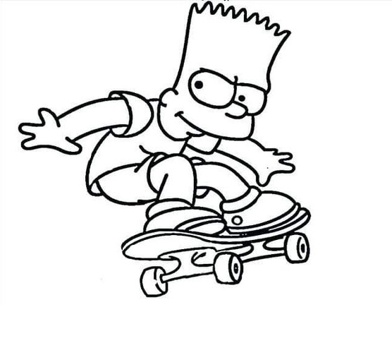 Рисунок для срисовки — Барт Симпсон и скейт.